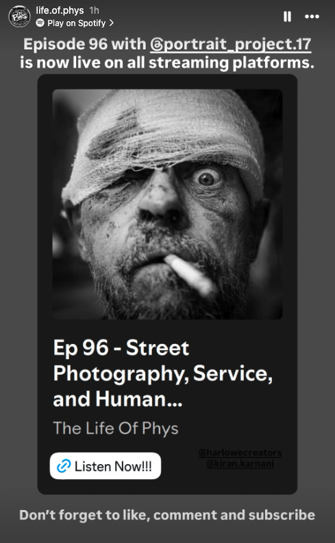 Had a really great conversation with Tyson Martin from Vancouver BC, host of Life Of Phys Podcast. The show dives into photography, the technical aspect through the art connection and the human condition.